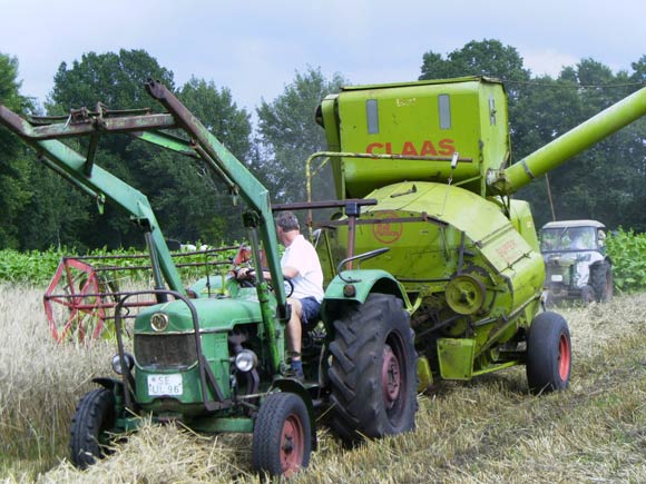 Am Abend war dann noch ein Gemütlicher Teil bei 1-.... Bier. Am Sonntag begann das Dreschfest mit einem Gottesdienst. Und es kamen noch mehr Schlepper als am Samstag, sodass es mehr als 150 Schlepper waren. Die Dampfmaschine von Hans Butenschön rauchte vor sich her und überall fanden wieder Vorführungen statt. Am späten Nachmittag machten wir uns dann wieder auf die Heimreise, die uns unterwegs noch ein kräftiges Unwetter bescherte. Um ca. 20 Uhr waren wir dann wieder zu Hause.